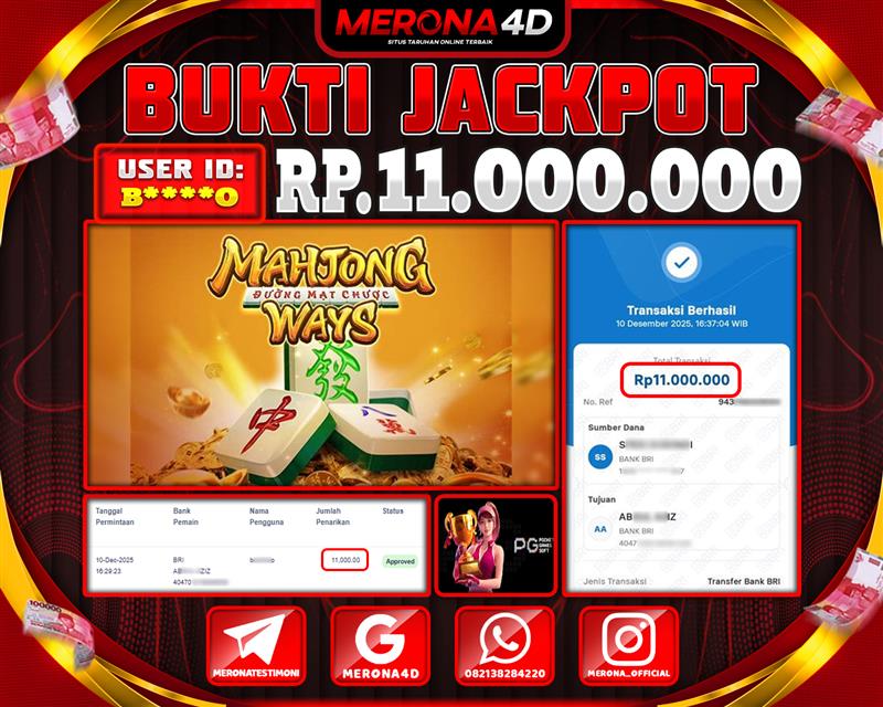 Selamat Kepada Member MERONA4D B*****O Telah Jackpot Di MAHJONG WAYS