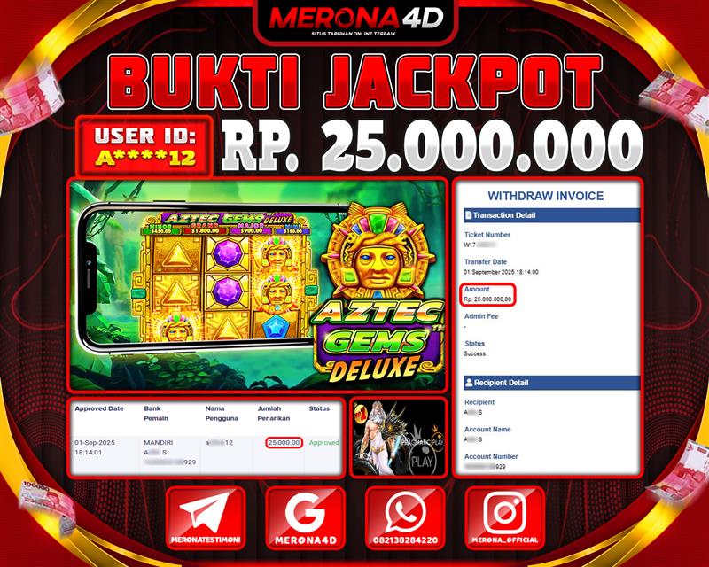 Selamat Kepada Member MERONA4D A*****12 Telah Jackpot Di AZTEC GEMS DELUXE