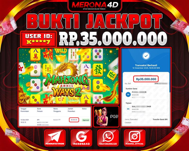 Selamat Kepada Member MERONA4D K*****7 Telah Jackpot Di MAHJONG WAYS 2