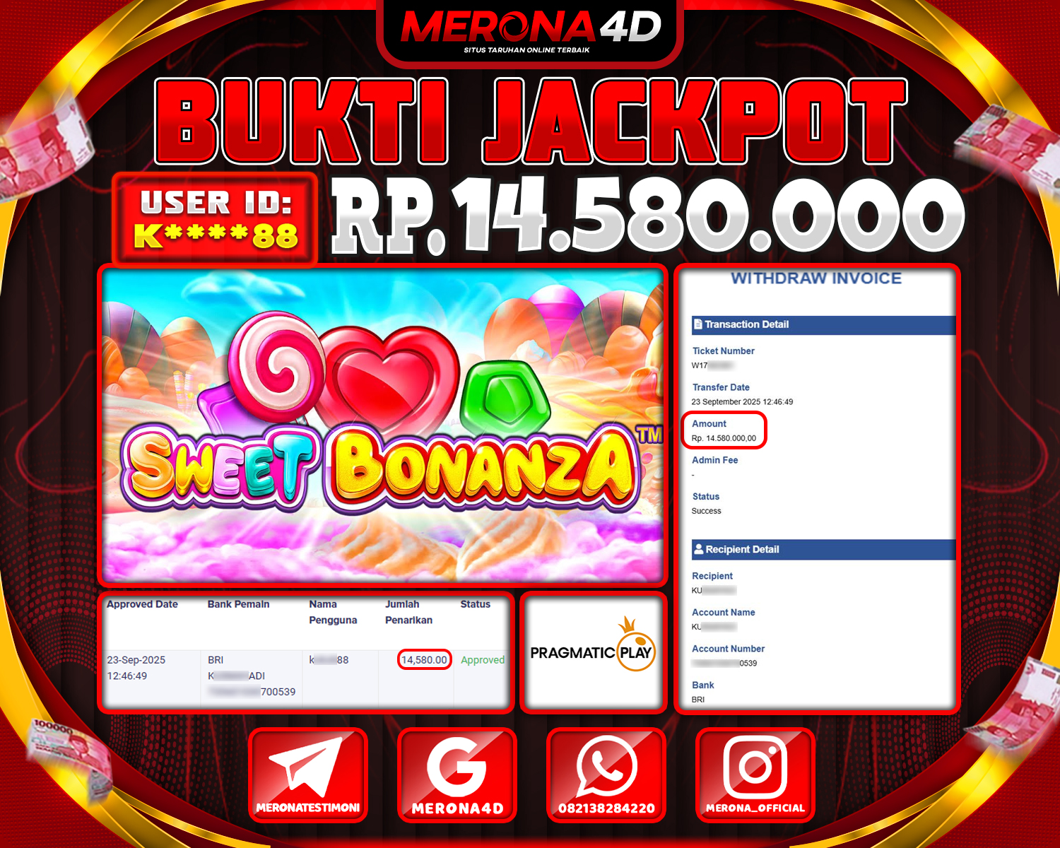 Selamat Kepada Member MERONA4D K*****8 Telah Jackpot Di SWEET BONANZA