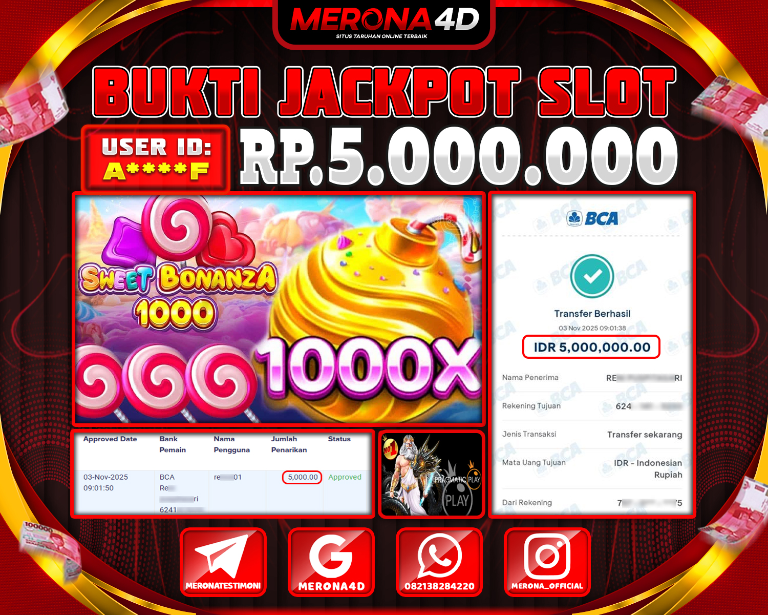 Selamat Kepada Member MERONA4D Rβ­‘οΏ½***οΏ½β­‘1 Telah Jackpot Di SWEET BONANZA 1000