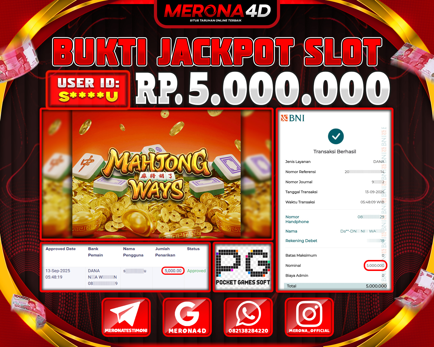 Selamat Kepada Member MERONA4D S****U Telah Jackpot Di MAHJONG WAYS