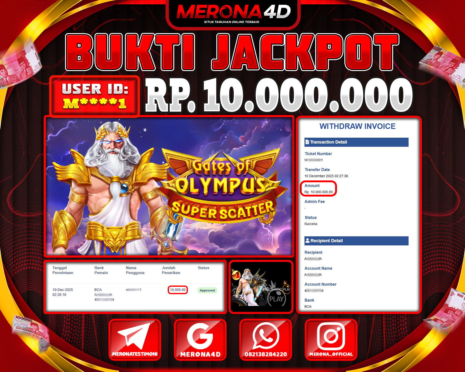 Selamat Kepada Member MERONA4D M****1 Telah Jackpot Di GATES OF OYMPUS SUPER SCATTER