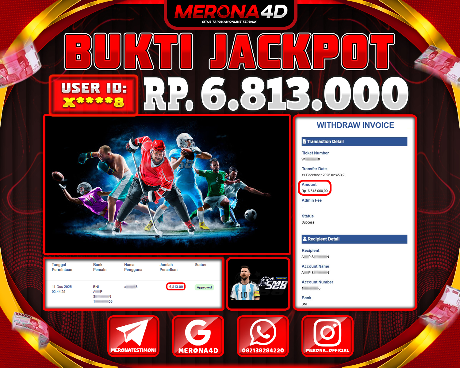 Selamat Kepada Member MERONA4D X****8 Telah Jackpot Di CMD