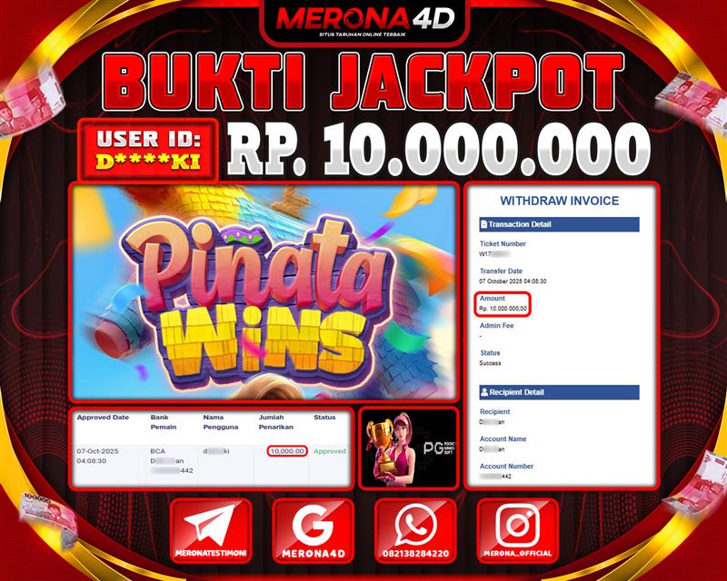 Selamat Kepada Member MERONA4D D*****KI Telah Jackpot Di PINATA WINS