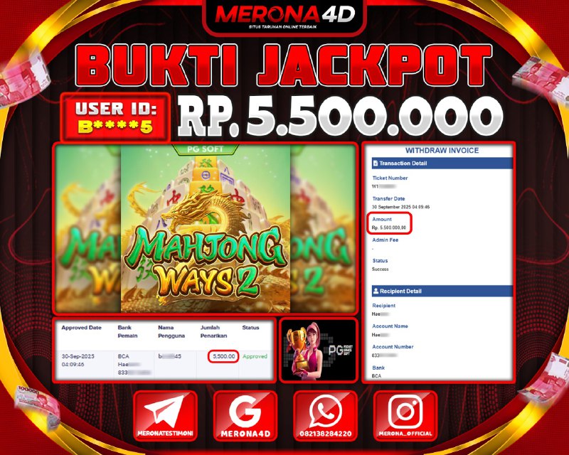 Selamat Kepada Member MERONA4D Bβ­‘οΏ½***οΏ½β­‘5 Telah Jackpot Di MAHJONG WAYS 2