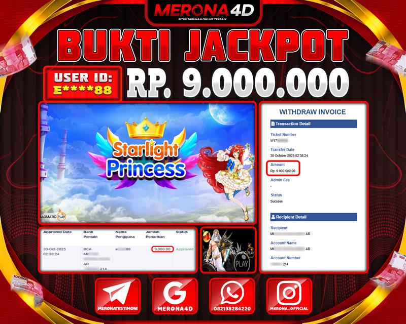 Selamat Kepada Member MERONA4D E*****88 Telah Jackpot Di STARLIGHT PRINCESS