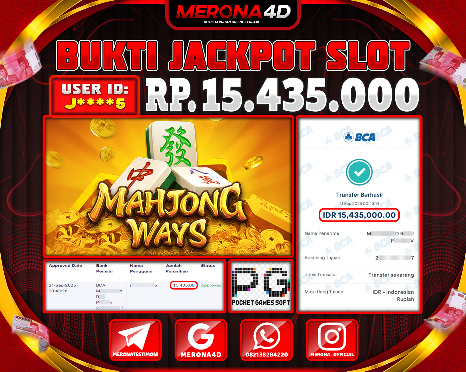 Selamat Kepada Member MERONA4D J****5 Telah Jackpot Di MAHJONG WAYS