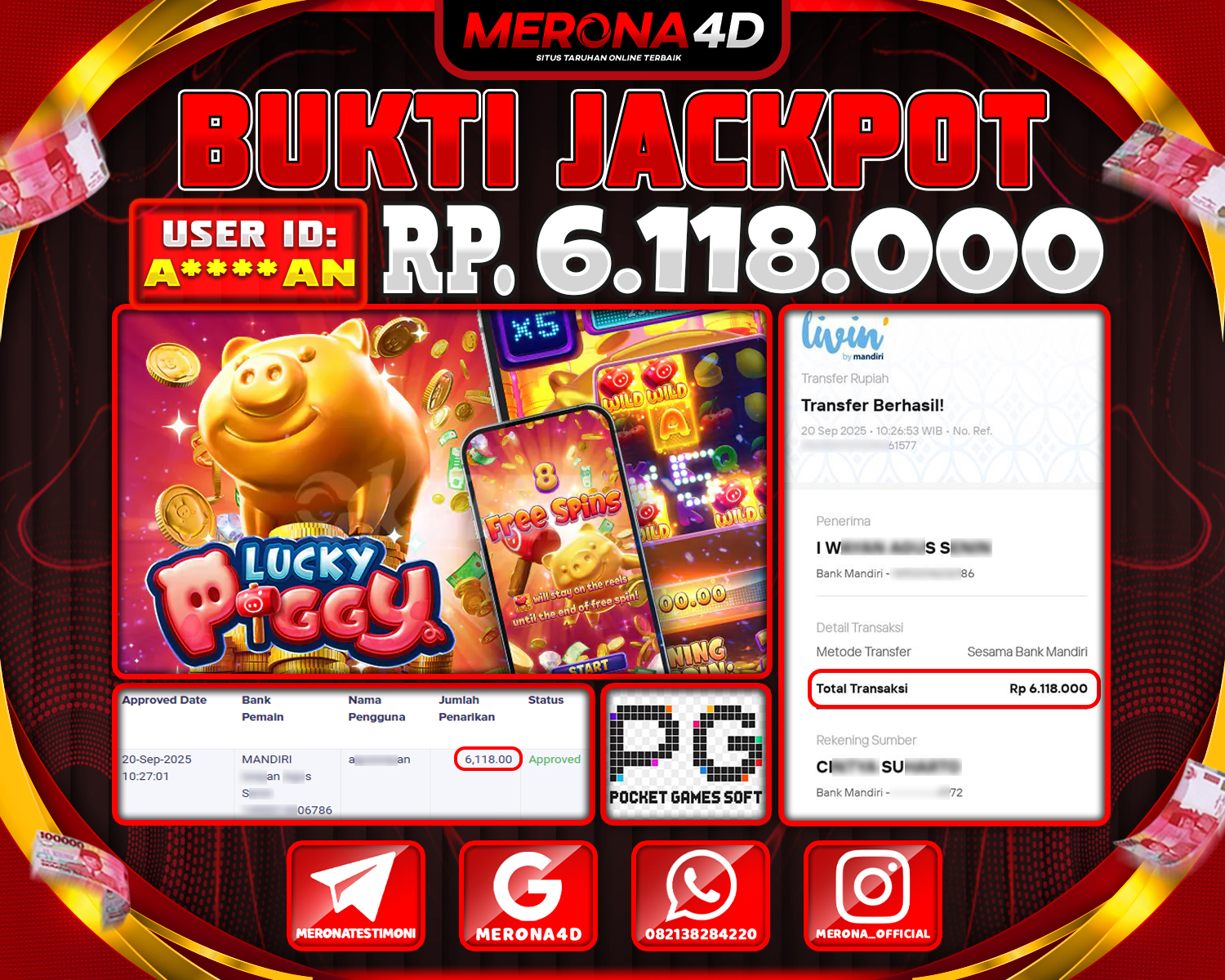 Selamat Kepada Member MERONA4D A*****N Telah Jackpot Di LUCKY PIGGY