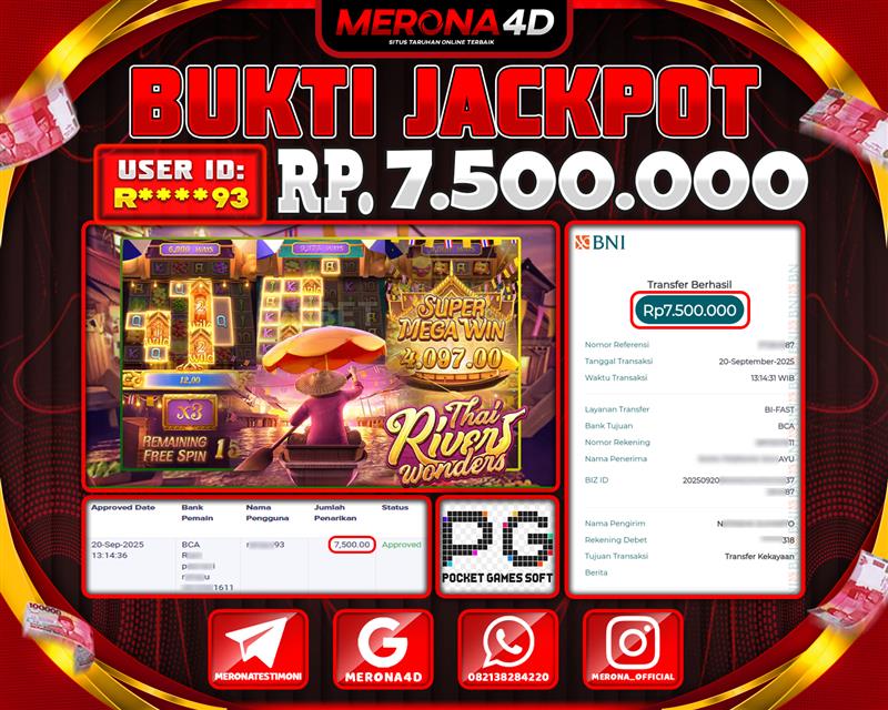 Selamat Kepada Member MERONA4D R*****93 Telah Jackpot Di THAI RIVER WONDERS