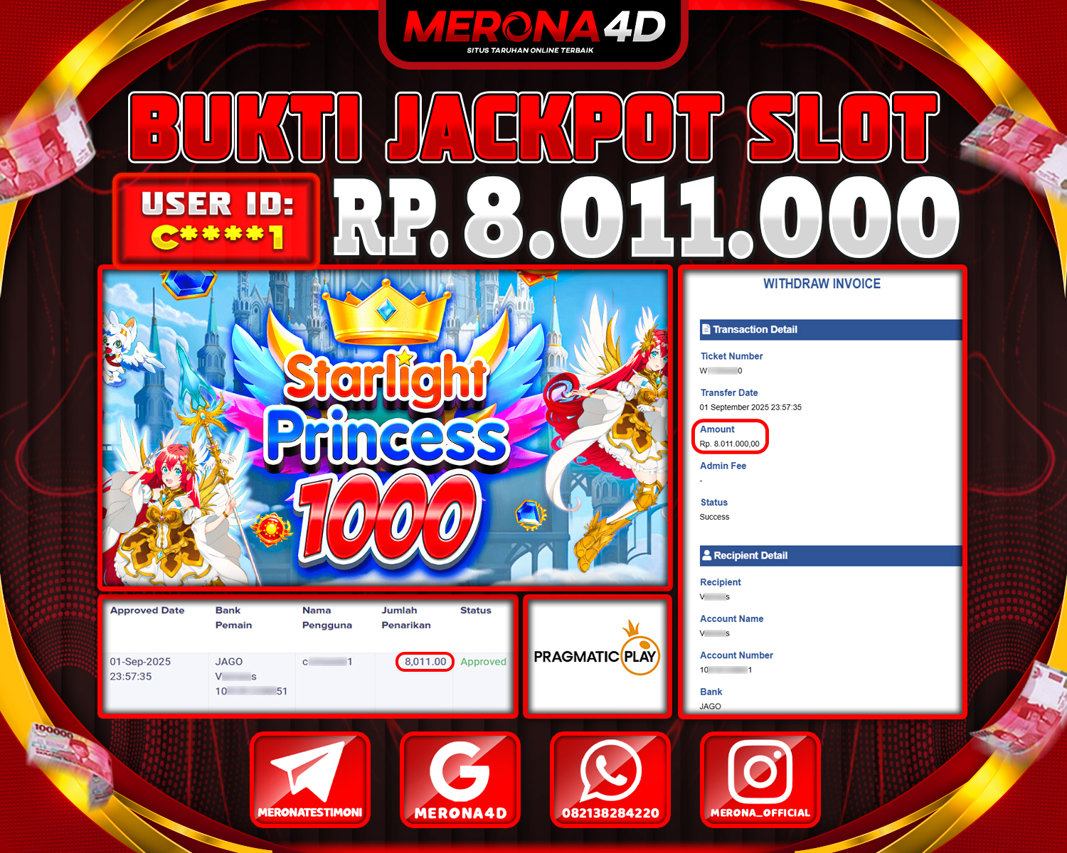 Selamat Kepada Member MERONA4D C****1 Telah Jackpot Di STARLIGHT PRINCESS 1000