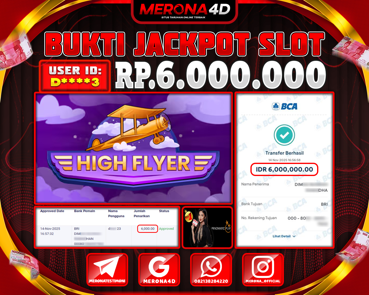 Selamat Kepada Member MERONA4D D⭑�***�⭑3 Telah Jackpot Di HIGHFLYER