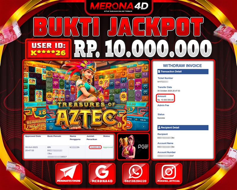 Selamat Kepada Member MERONA4D X*****26 Telah Jackpot Di TREASURE OF AZTEC