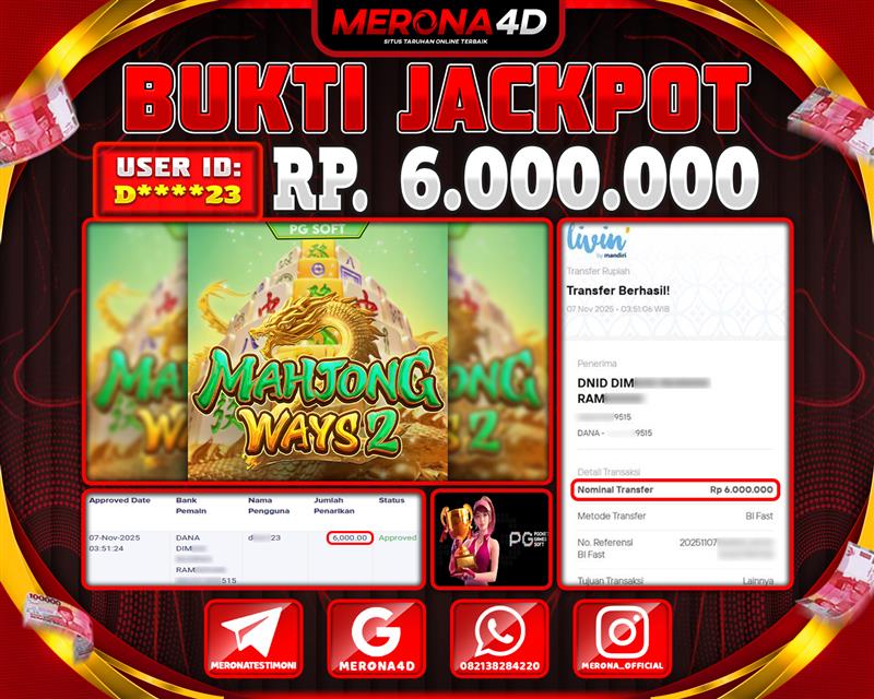 Selamat Kepada Member MERONA4D D*****23 Telah Jackpot Di MAHJONG WAYS 2