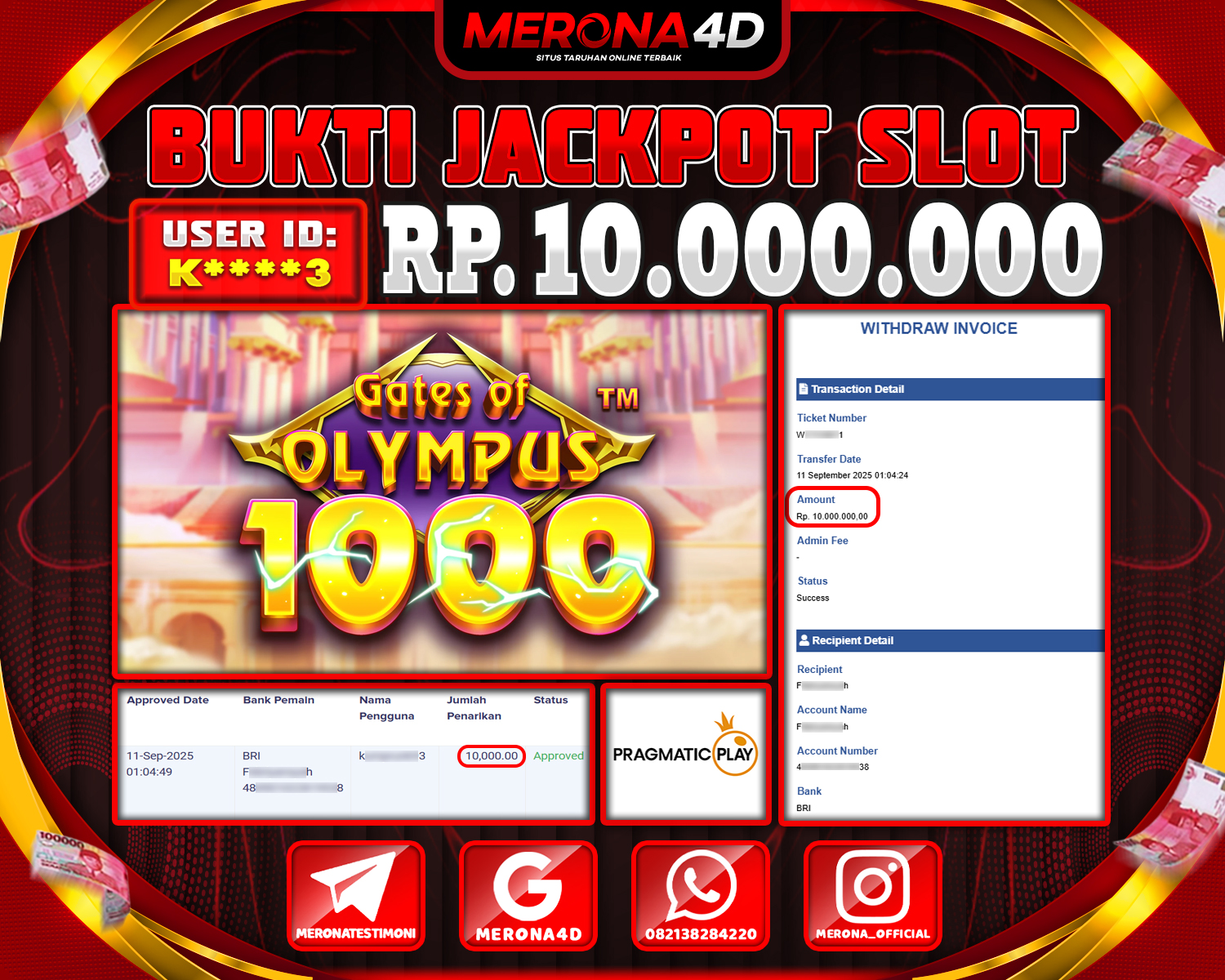 Selamat Kepada Member MERONA4D K****3 Telah Jackpot Di GATES OF OLYMPUS 1000