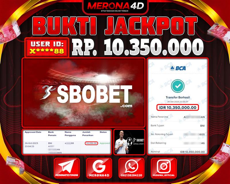 Selamat Kepada Member MERONA4D X*****88 Telah Jackpot Di SBOSPORTS