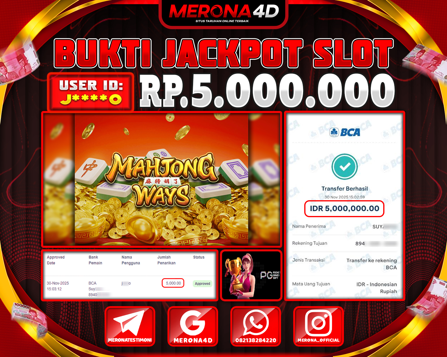 Selamat Kepada Member MERONA4D J****O Telah Jackpot Di MAHJONG WAYS