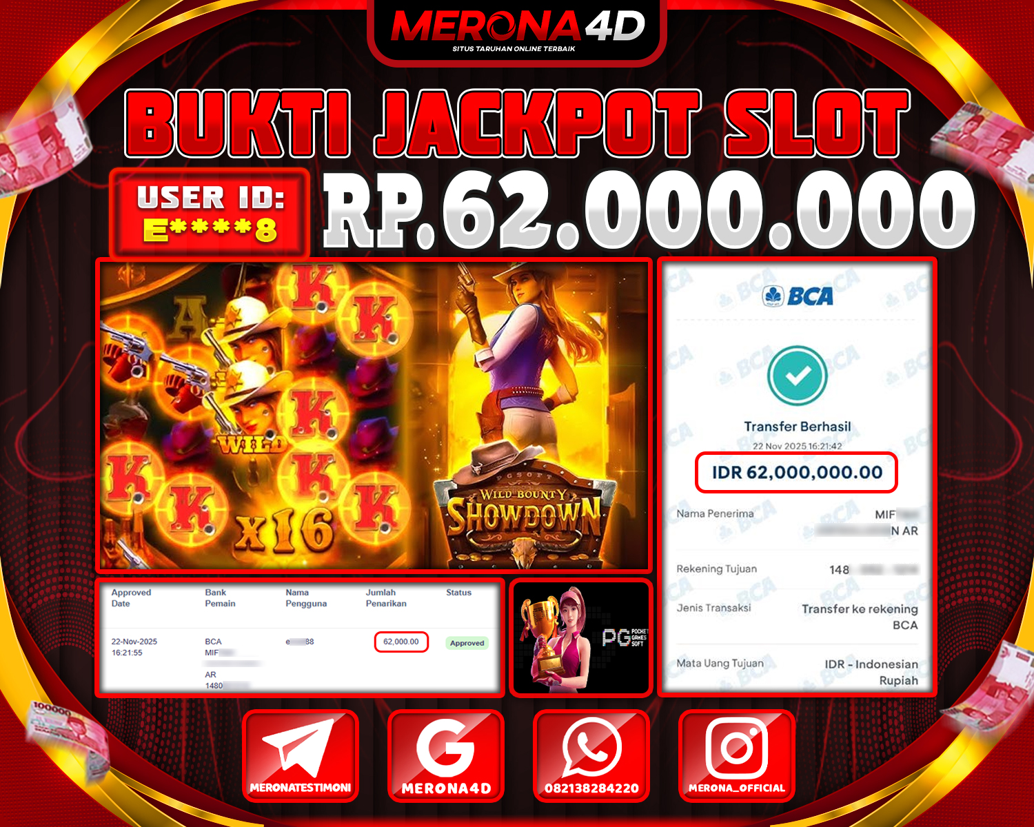 Selamat Kepada Member MERONA4D E****8 Telah Jackpot Di WILD BOUNTY SHOWDOWN