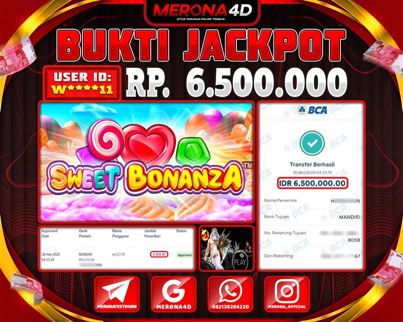 Selamat Kepada Member MERONA4D W*****11 Telah Jackpot Di SWEET BONANZA