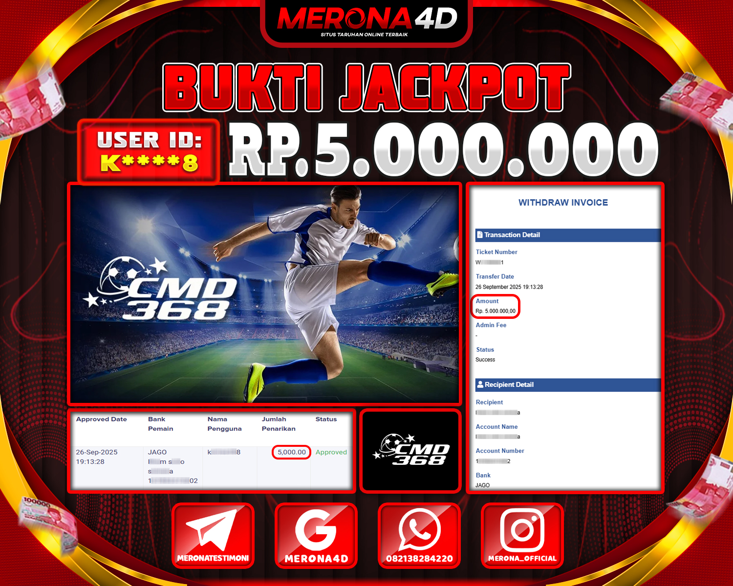 Selamat Kepada Member MERONA4D K****8 Telah Jackpot Di CMD SPORT