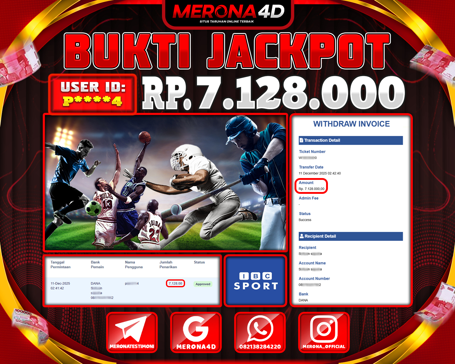 Selamat Kepada Member MERONA4D P****4 Telah Jackpot Di IBC SPORT