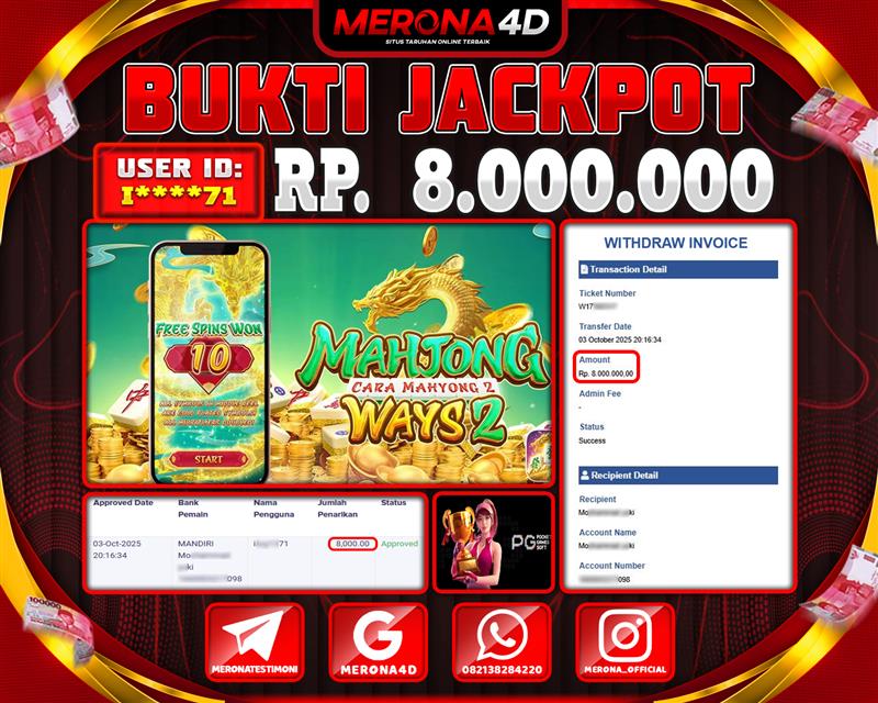 Selamat Kepada Member MERONA4D K****O Telah Jackpot Di MAHJONG WAYS 2