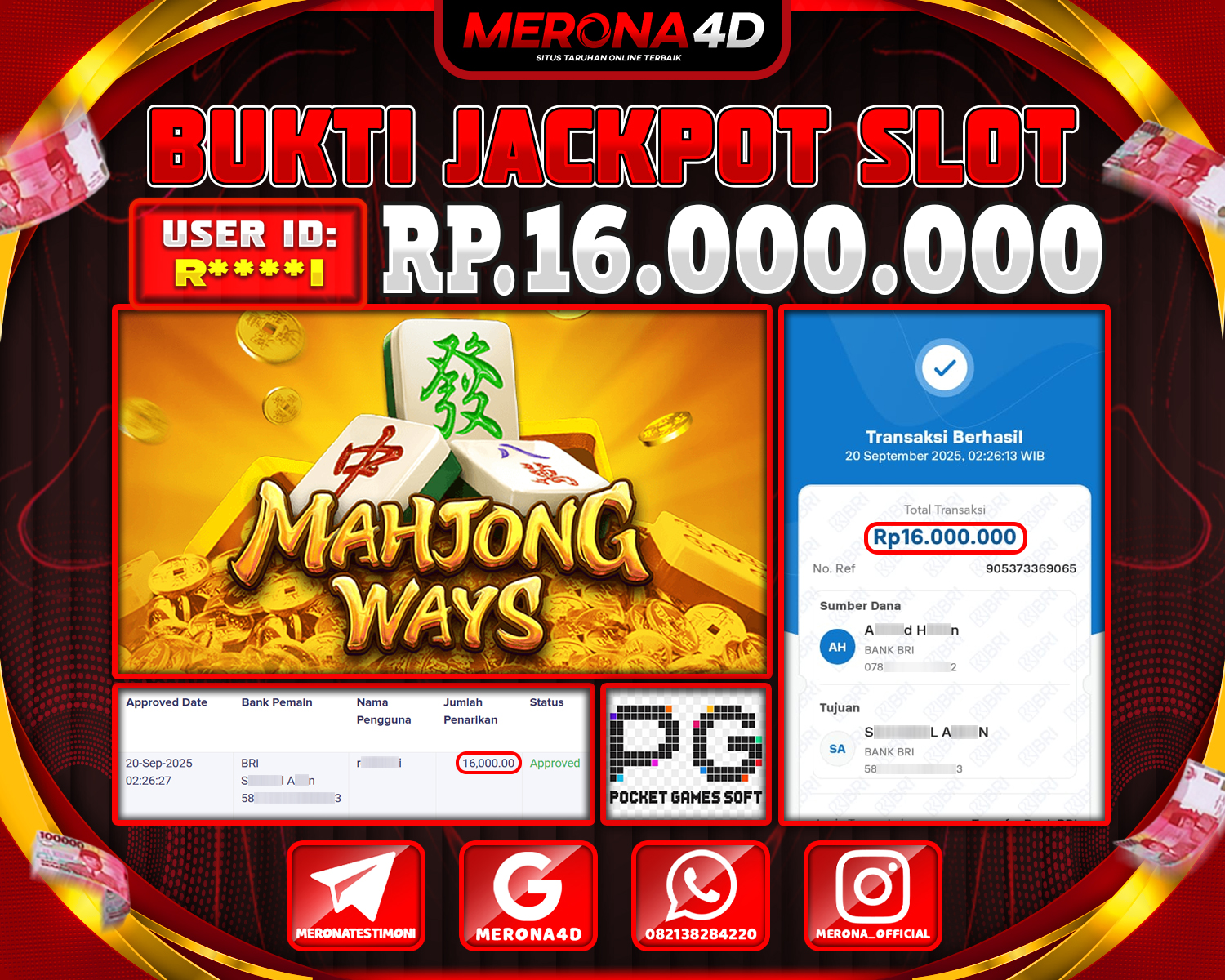 Selamat Kepada Member MERONA4D R****I Telah Jackpot Di MAHJONG WAYS