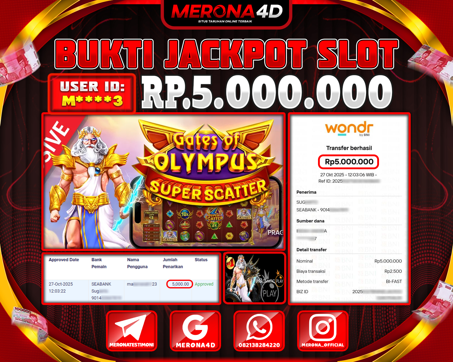 Selamat Kepada Member MERONA4D Mβ­‘οΏ½***οΏ½β­‘3 Telah Jackpot Di GATES OF OLYMPUS SUPER SCATTER
