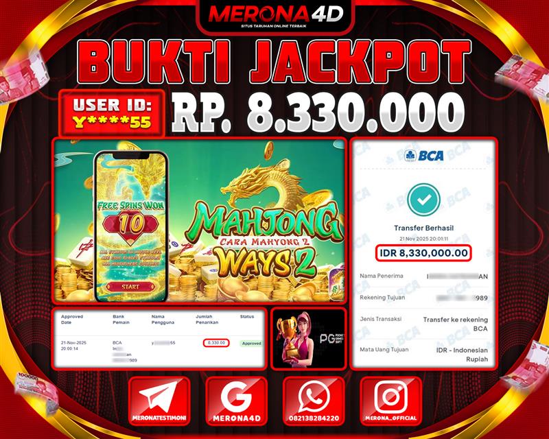 Selamat Kepada Member MERONA4D Y*****55 Telah Jackpot Di MAHJONG WAYS 2