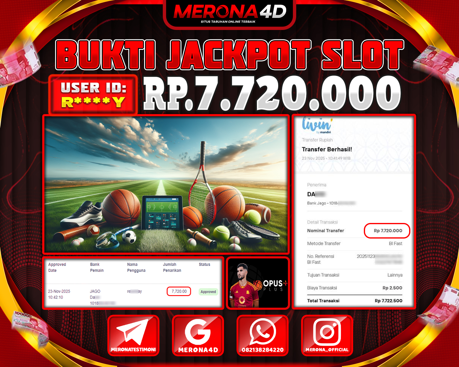 Dari Liga Champions hingga NBA, serta turnamen e-sports favorit seperti Mobile Legends dan Dota 2, MERONA4D menawarkan sportsbook lengkap dengan odds kompetitif dan sistem livescore real-time. Taruhan jadi lebih seru dan transparan!