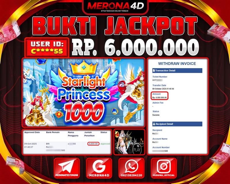Selamat Kepada Member MERONA4D C*****55 Telah Jackpot Di STARLIGHT PRINCESS 1000