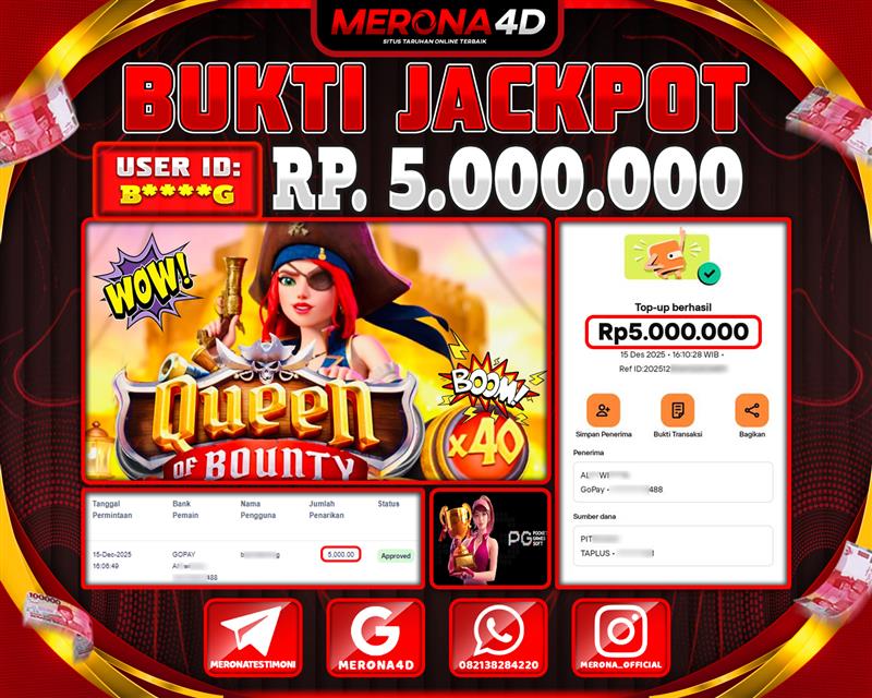 Selamat Kepada Member MERONA4D B*****G Telah Jackpot Di QUEEN OF BOUNTY