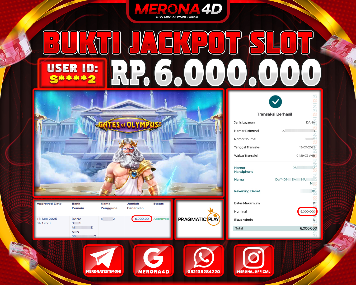 Selamat Kepada Member MERONA4D B*****AX Telah Jackpot Di SLOT88 OLYMPUS
