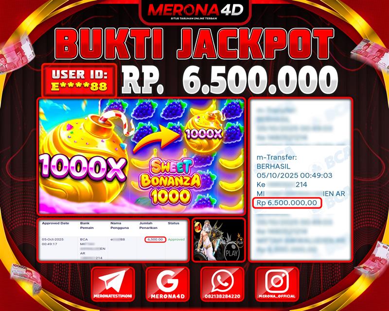Selamat Kepada Member MERONA4D E*****88 Telah Jackpot Di SWEET BONANZA 1000
