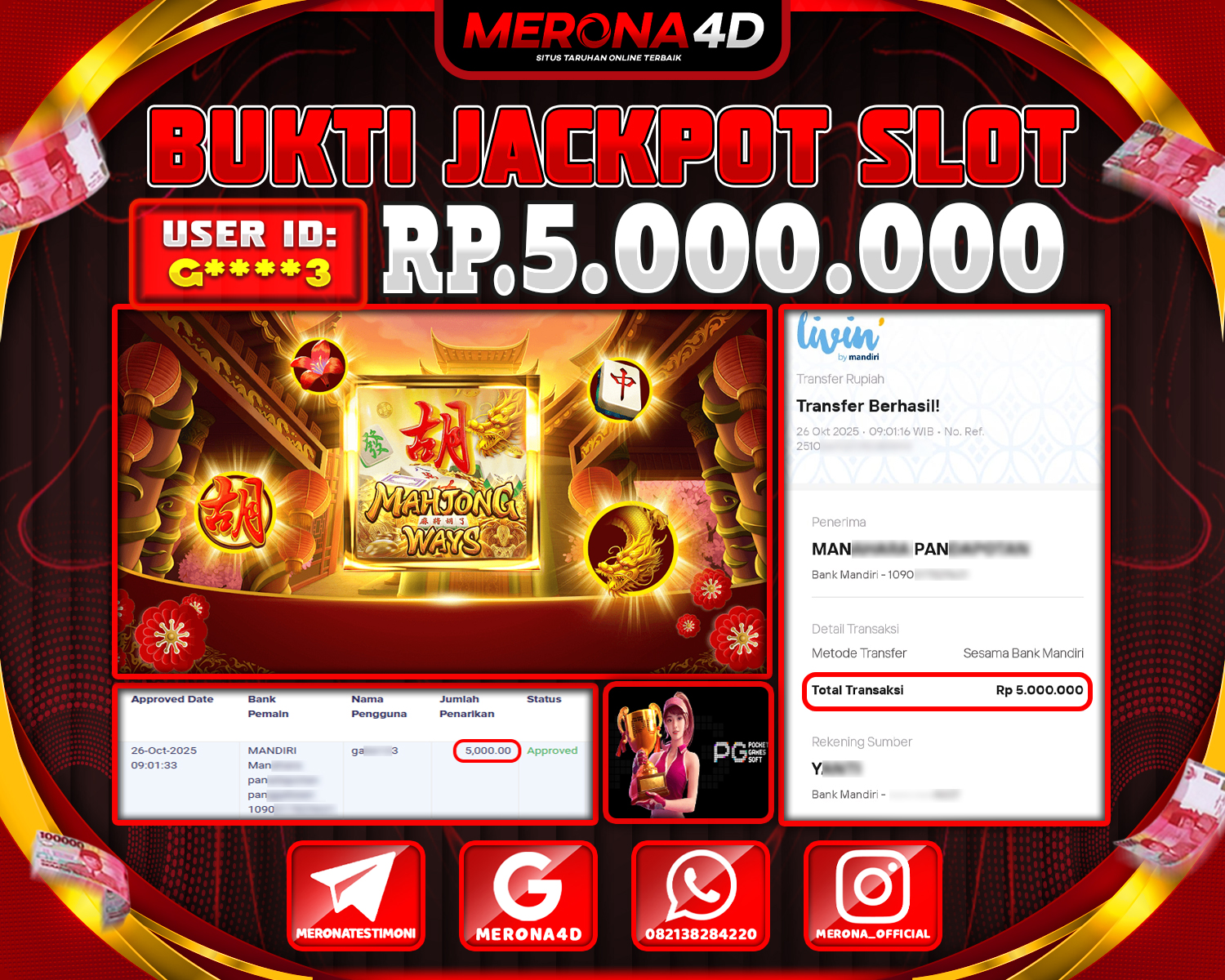 Kamu baru saja menang besar Rp.5.000.000 dari game MAHJONG WAYS! πŸ’Έβœ¨
