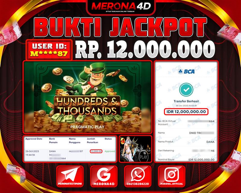 Selamat Kepada Member MERONA4D M*****87 Telah Jackpot Di HUNDREDS AND THOUSANDS
