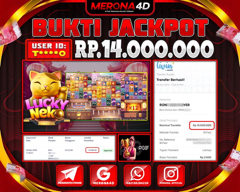 Selamat Kepada Member MERONA4D T*****O Telah Jackpot Di LUCKY NEKO