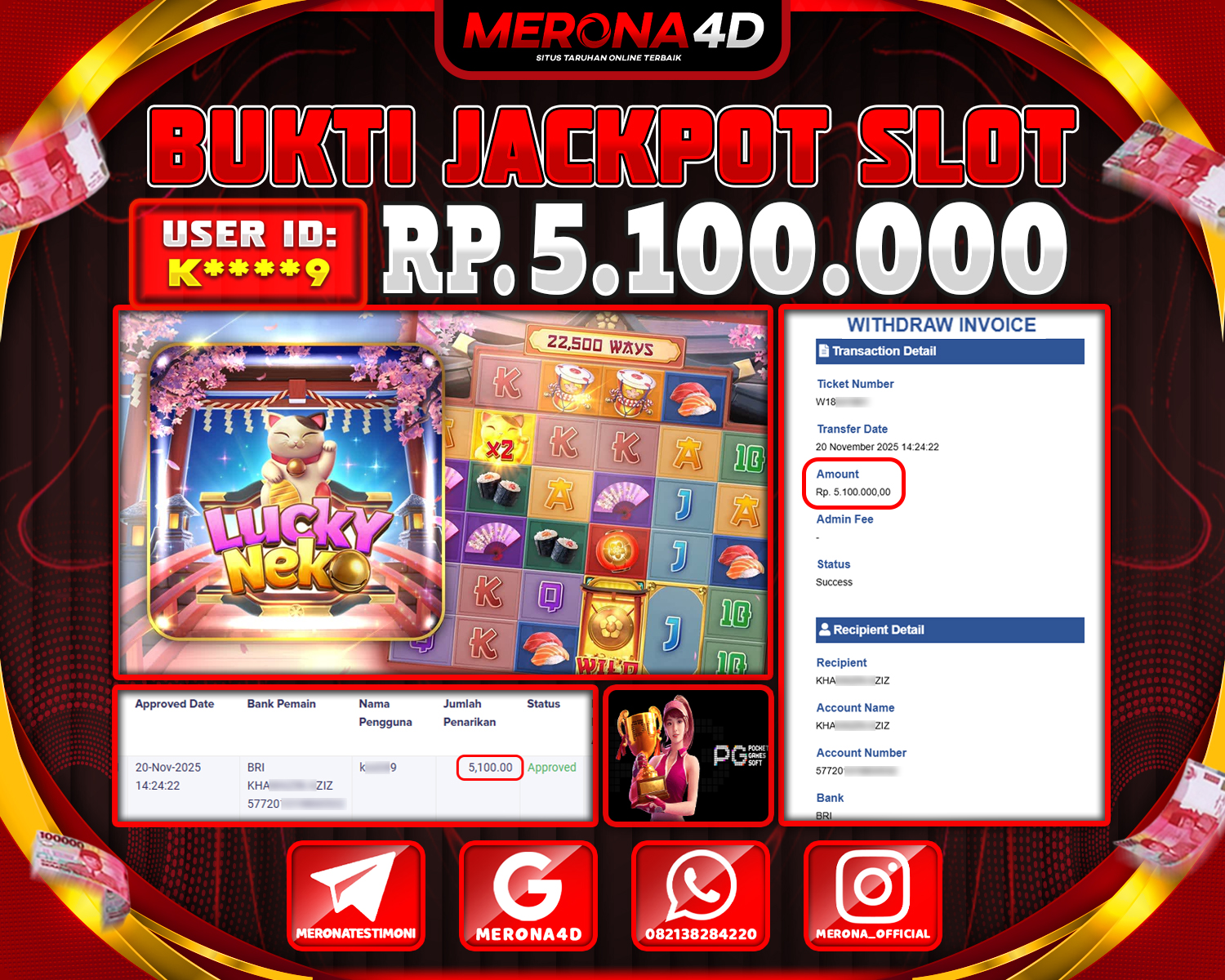 Selamat Kepada Member MERONA4D K****9 Telah Jackpot Di LUCKY NEKO