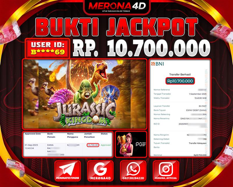 Selamat Kepada Member MERONA4D B*****69 Telah Jackpot Di JURASSIC KINGDOM