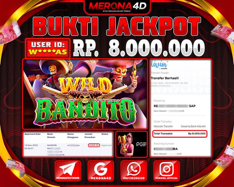 Selamat Kepada Member MERONA4D W*****AS Telah Jackpot Di WILD BANDITO