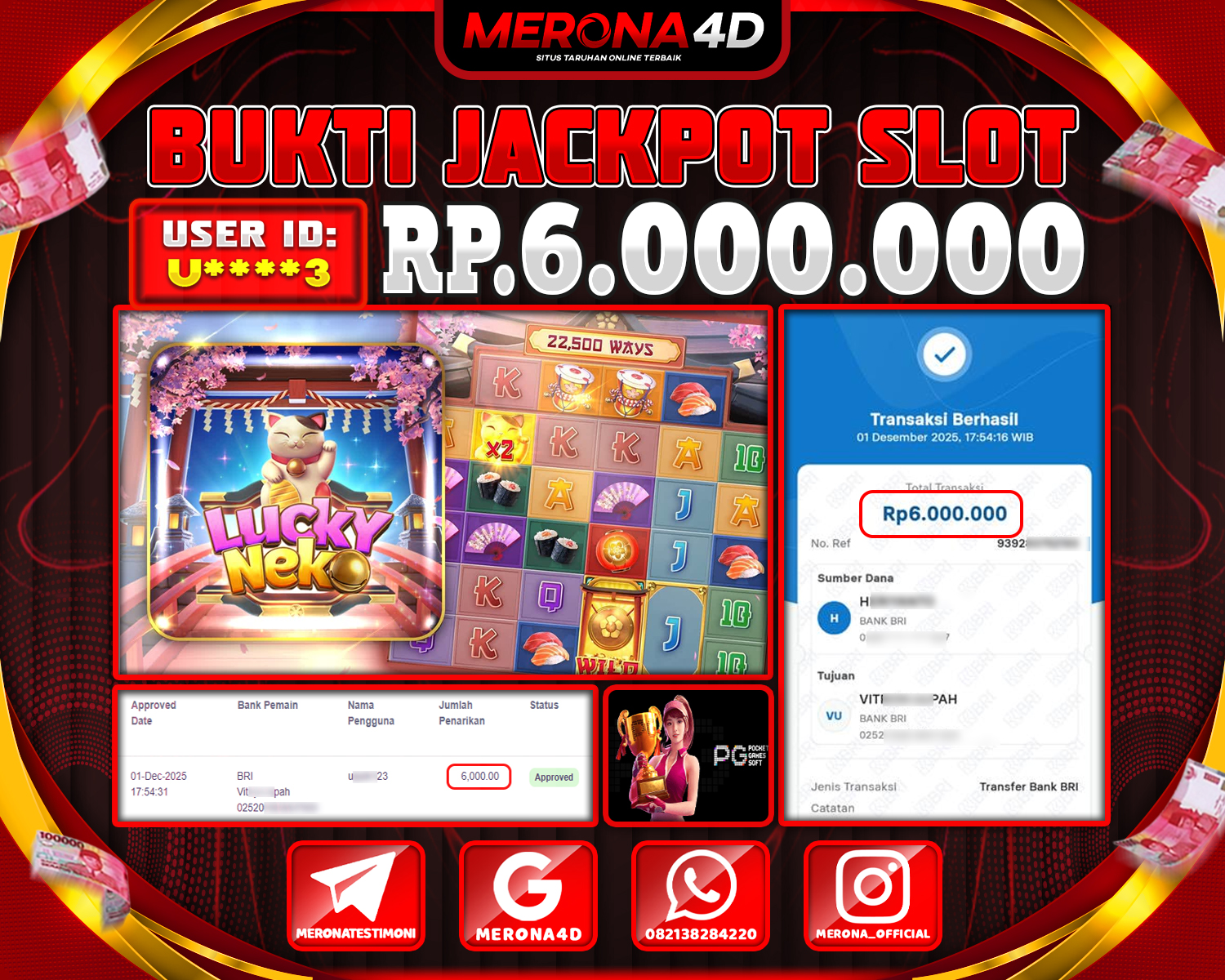 Selamat Kepada Member MERONA4D U****3 Telah Jackpot Di LUCKY NEKO