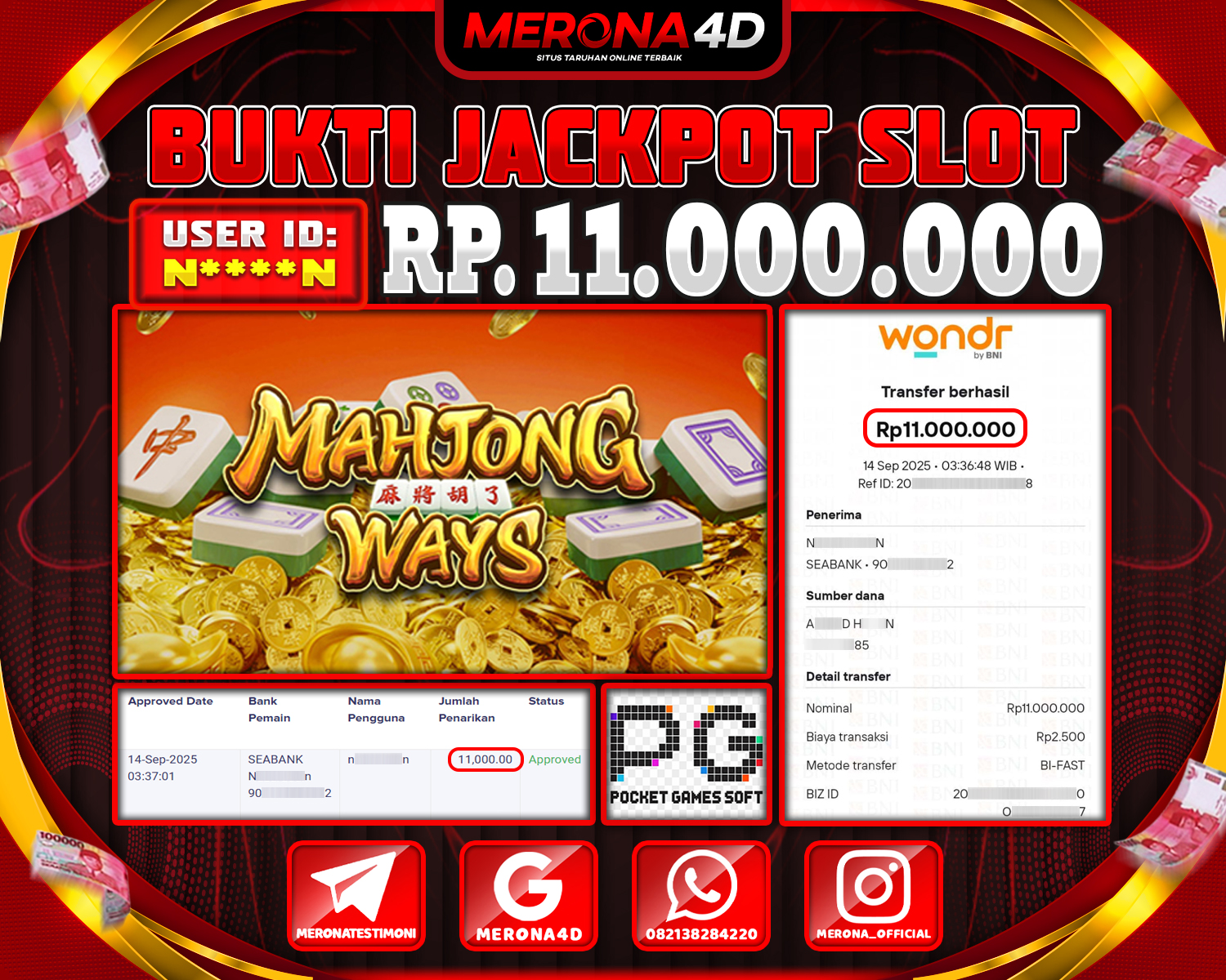 Selamat Kepada Member MERONA4D N****N Telah Jackpot Di MAHJONG WAYS