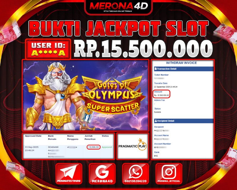 Selamat Kepada Member MERONA4D Aβ­‘οΏ½***οΏ½β­‘A Telah Jackpot Di GATES OF OLYMPUS SUPER SCATTER