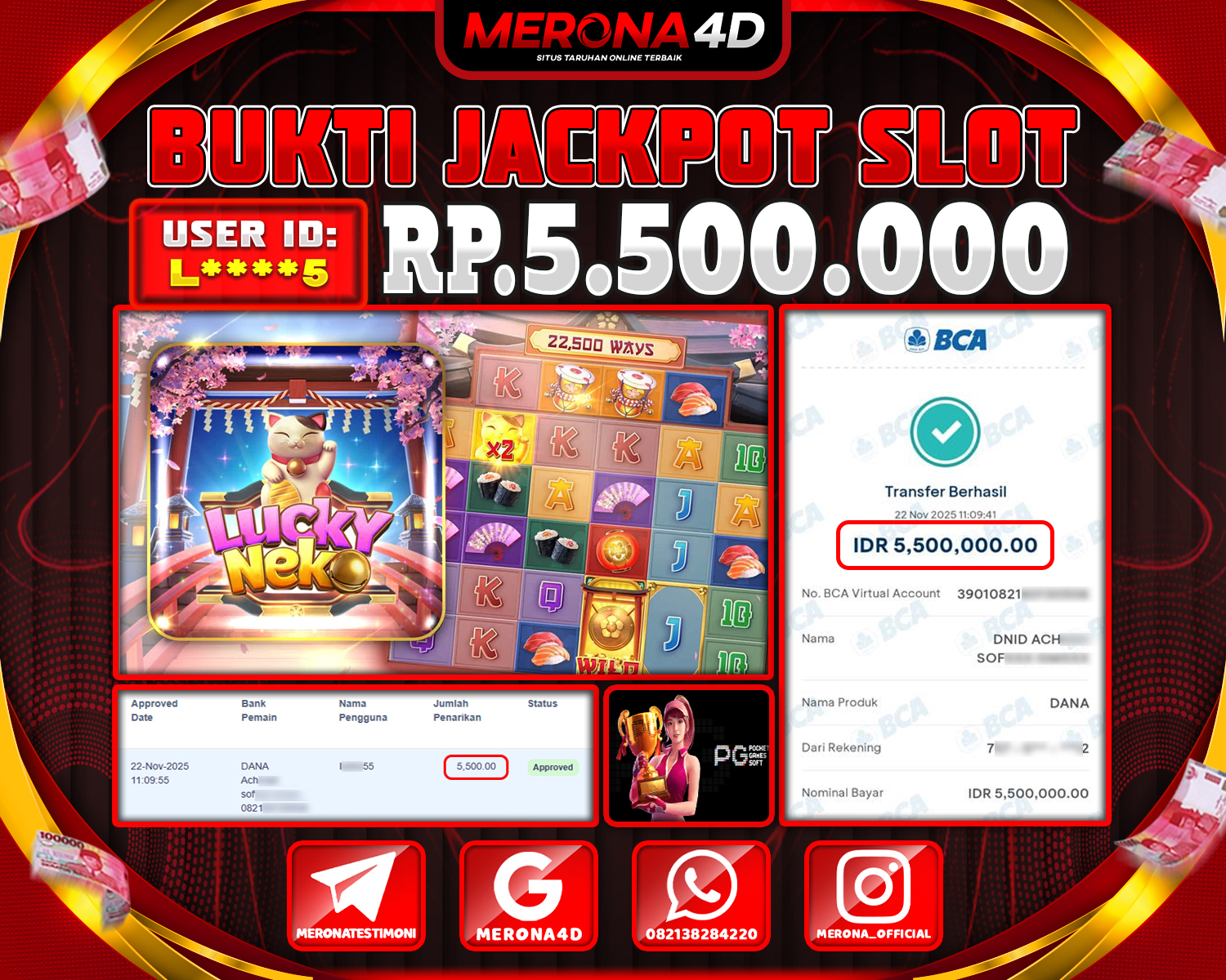 Selamat Kepada Member MERONA4D L****5 Telah Jackpot Di LUCKY NEKO