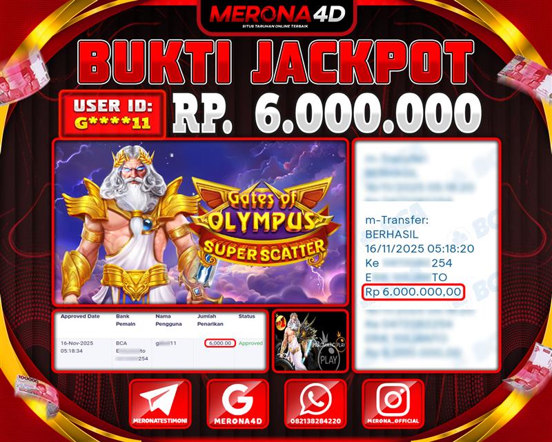 Selamat Kepada Member MERONA4D G*****11 Telah Jackpot Di GATES OF OLYMPUS SUPER SCATTER