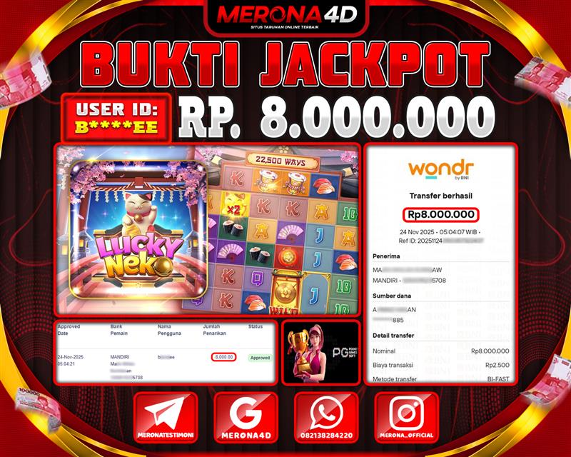 Selamat Kepada Member MERONA4D B*****EE Telah Jackpot Di LUCKY NEKO