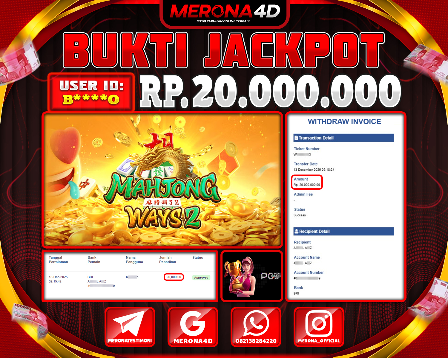 Selamat Kepada Member MERONA4D B****O Telah Jackpot Di MAHJONG WAYS 2