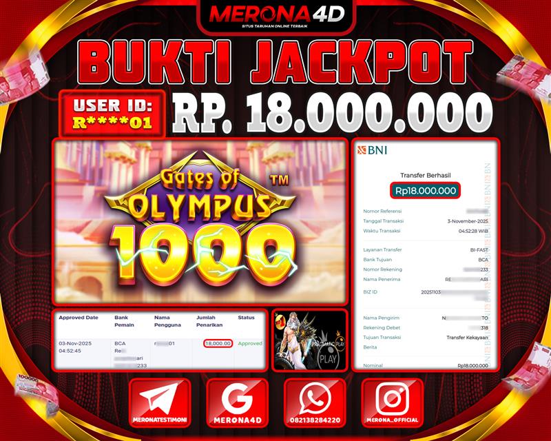 Selamat Kepada Member MERONA4D R*****01 Telah Jackpot Di GATES OF OLYMPUS 1000