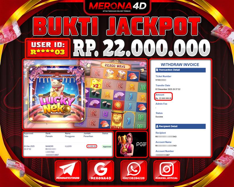 Selamat Kepada Member MERONA4D R*****03 Telah Jackpot Di LUCKY NEKO