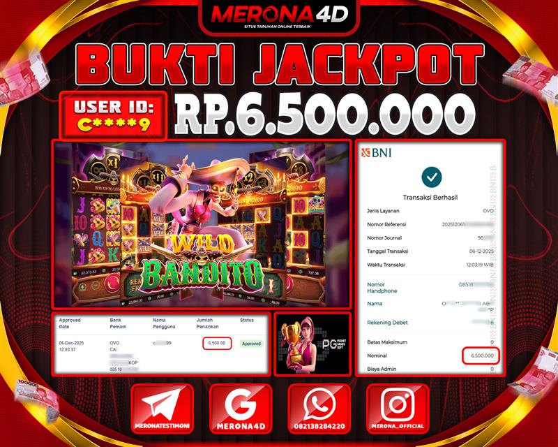 Selamat Kepada Member MERONA4D C*****9 Telah Jackpot Di WILD BANDITO